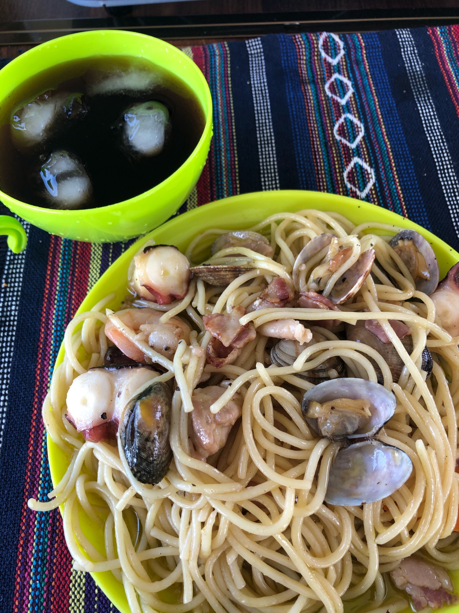 キャンプ飯 アヒージョの余りで美味 海鮮パスタ レシピ 作り方 By りんりんりん 楽天レシピ